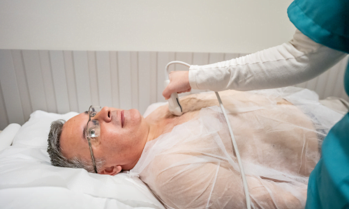 Durante o exame, um médico especializado em ultrassonografia coloca um gel na região do tórax e desliza um dispositivo chamado transdutor sobre a pele. O transdutor emite ondas sonoras de alta frequência que atravessam o corpo e retornam como ecos, formando imagens em tempo real do coração na tela do aparelho.